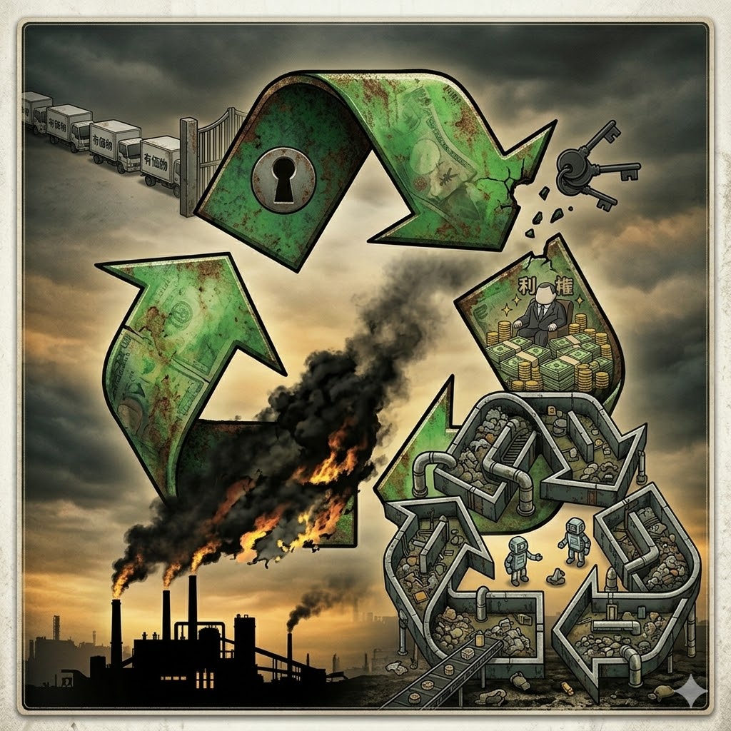 これは単なるゴミの問題ではありません。大きな会社と役所が「リサイクルは素晴らしい」という言葉を使って作り上げた、税金と利益が回り続ける仕組みの記録です。これから何度も、この現場の真実を一枚ずつ剥がしていこうと思います。